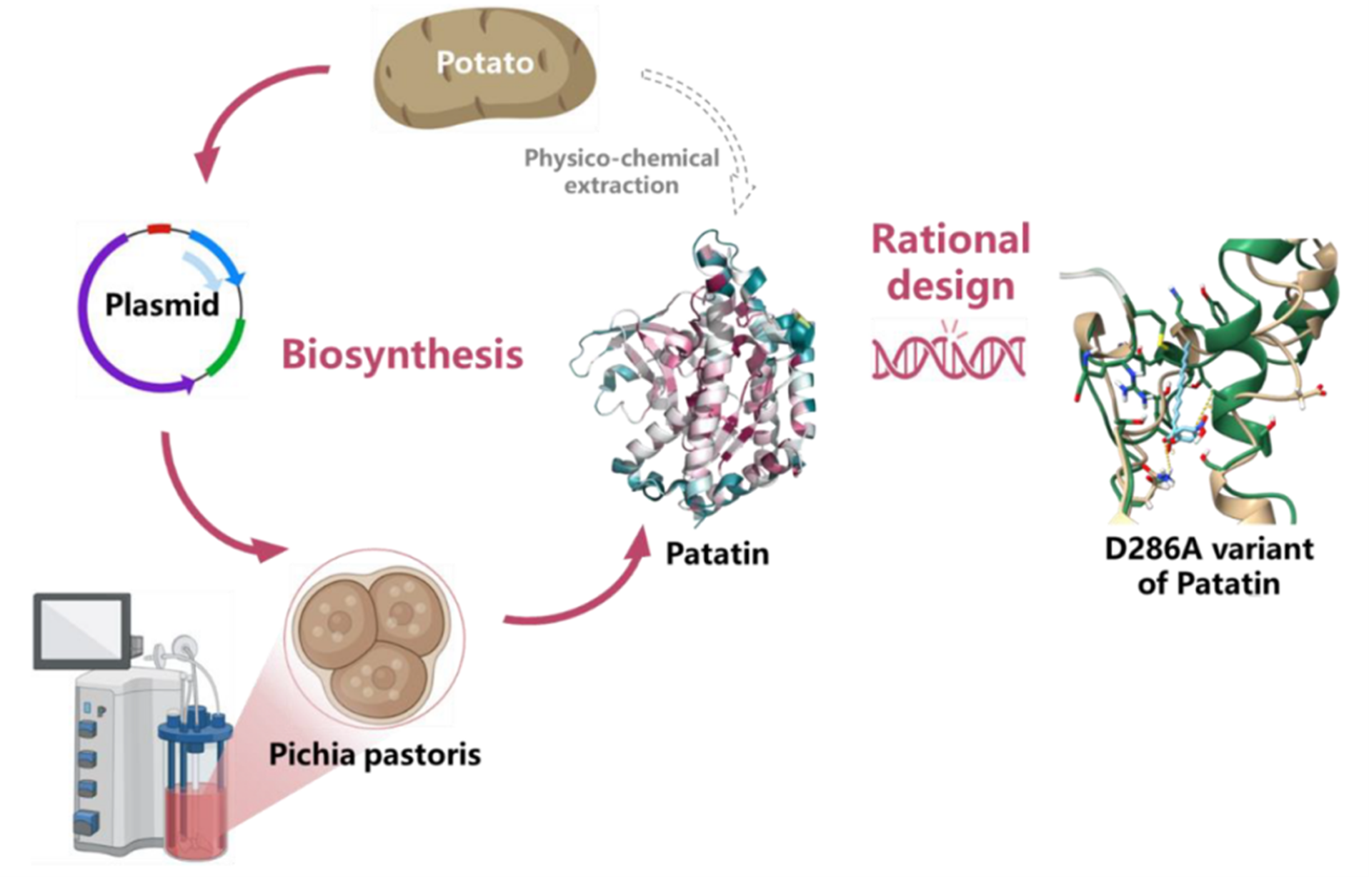 Patatin, the major glycoprotein in potato tubers, is known for its emulsifying, antioxidant, and lipid-modifying properties. With its nutritional value and versatile bioactivity, it has attracted growing interest as a plant-derived lipase. However, two limitations hinder its industrial application: low natural expression levels and a strong preference for short-chain substrates, leaving its activity toward long-chain fatty acids relatively weak.
