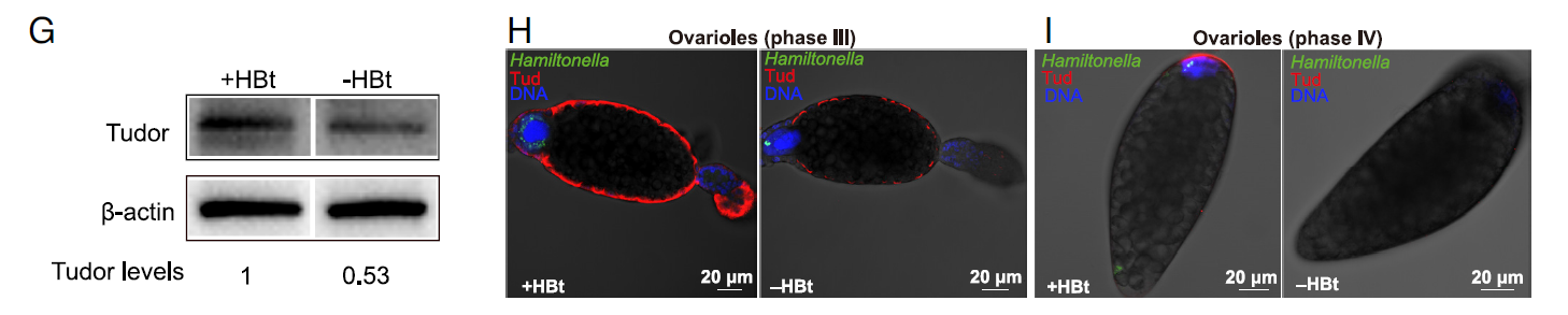 1) The symbiont Hamiltonella regulates Tudor expression levels within host oocytes;
