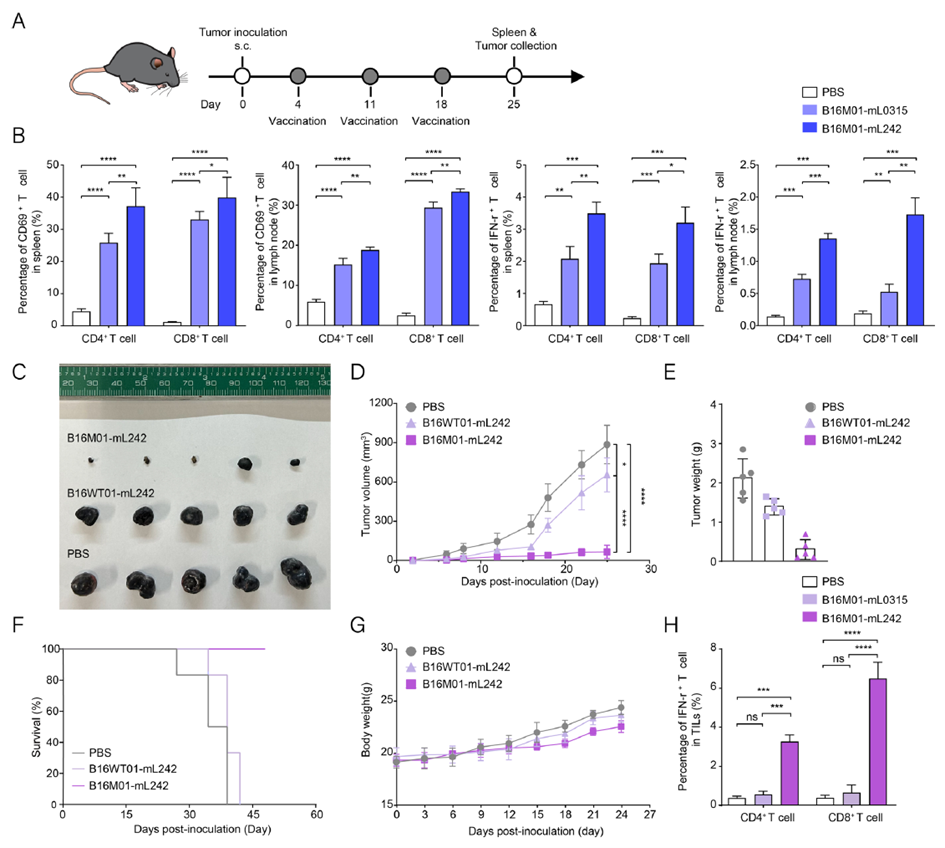 Figure 4. T-cell responses and anti-tumor efficacy of B16M01-mL242